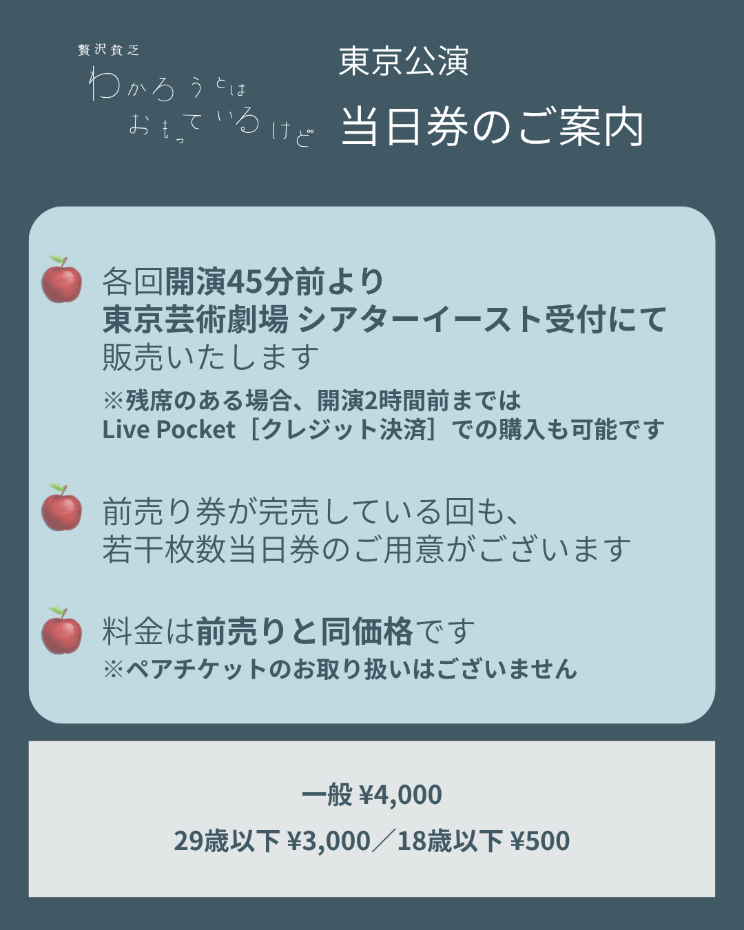 『わかろうとはおもっているけど』東京公演では、当日券を販売いたします。